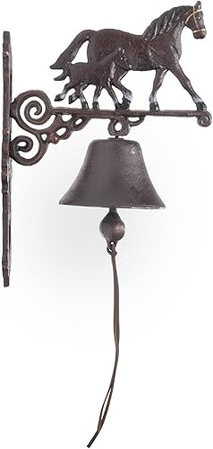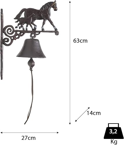 Campana decorativa a forma di cavallo con puledro, 63 x 14 x 27 cm, campana da parete per porta di casa, da appendere, campana in ghisa, campana da giardino, stile retrò, anticato, shabby