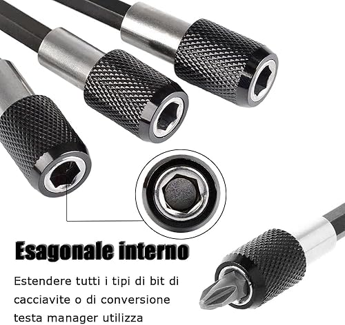 Prolunga per Trapano Magnetico, 3PCS 1/4' Esagonale Portainserti Magnetico Porta Inserti Magnetico, Prolunga Avvitatore Prolunghe Portainserti Porta Punte Con Mandrino per Trapano, 60/100/150mm