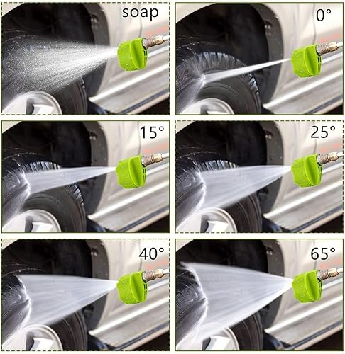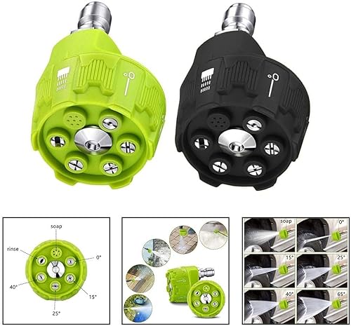 Ugello 6-in-1 Power Wash con attacco rapido 1/4 di pollice punta rotante per idropulitrice, angoli di spruzzo regolabili 0-40°, modalità sapone e risciacquo