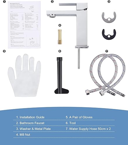ARCORA Rubinetto per lavabo, in acciaio inox 304, con tubi di collegamento da 60 cm, colore: oro