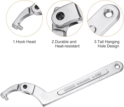 sourcing map Chiave a C da 51-121 mm, regolabile, con perno rotondo, in cromo vanadio, per dadi di bloccaggio, macchine utensili meccaniche, tonalità argento