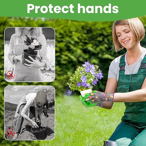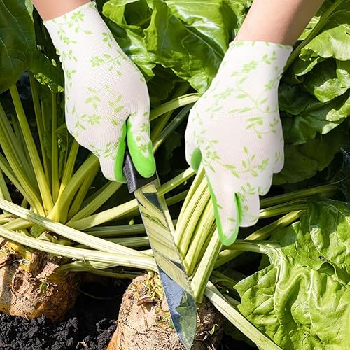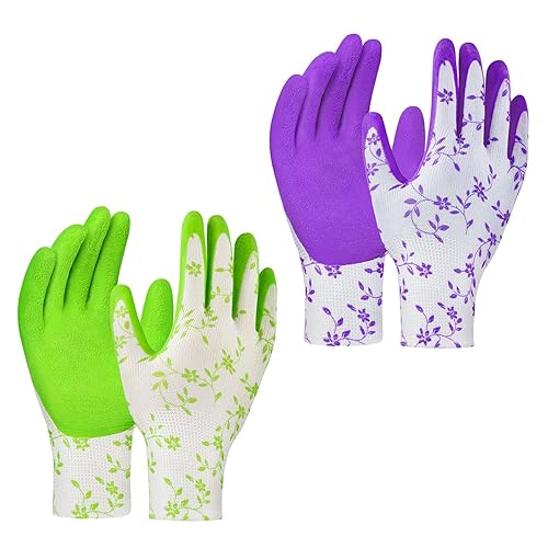Guanti da Giardinaggio, 2 Paia Guanti da Lavoro per Donna Giardinaggio All'Aperto Guanti da Lavoro Protettivi Rivestimento in Gomma Traspiranti Guanti per Forbici da Potatura Guanti Lattice