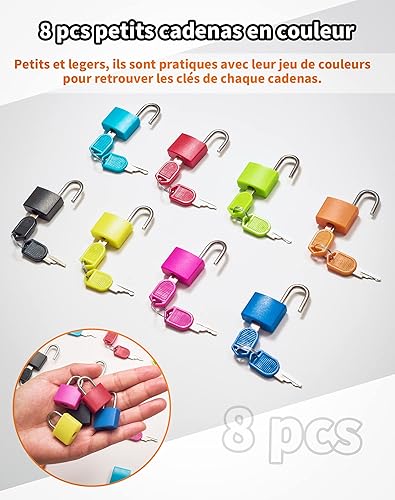 LAOYE 8 Pezzi Lucchetto a Chiave con Mini Lucchetto per Bagagli con 2 Chiavi Lucchetto da Viaggio Serrature per Zaino, Armadietti, Valigia Aereo, Vetrina Bagagli