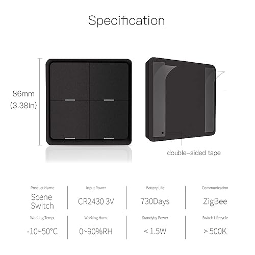 MOES 4 Gang 12 scene ZigBee Interruttore a pulsante, interruttore di scena per automazione intelligente per dispositivi intelligenti Tuya, richiede Tuya ZigBee HUB, batteria gratuita, Nero