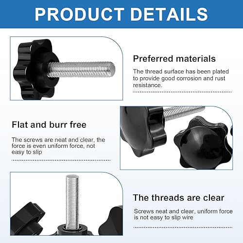 12 viti di serraggio per dadi ad aletta, M6 x 25 mm, per pollice, dado a stella M6, viti a testa svasata in plastica, viti a testa svasata