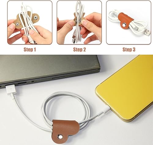Organizzatore per cavi a forma di cuore da 8 pezzi, organizer per cavi USB, fermacavo, organizer per cavi per cuffie Avvolgicavo per cuffie, cinghia per gestione cavi in pelle