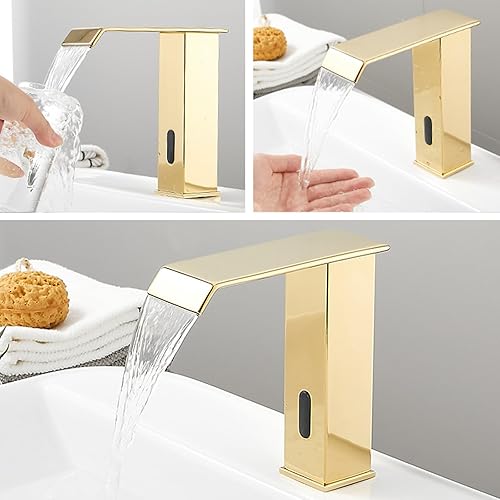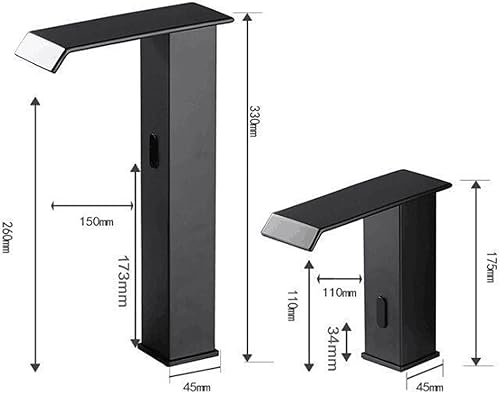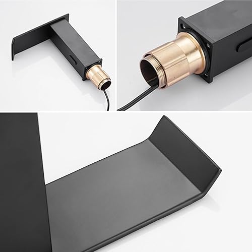 Rubinetti con Sensore Miscelatore Bagno Acqua Calda e Fredda Rubinetto Cascata Bagno Lavabo in Ottone Rubinetteria Bagno,Nero-A,Alto