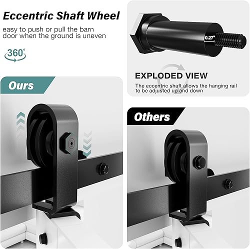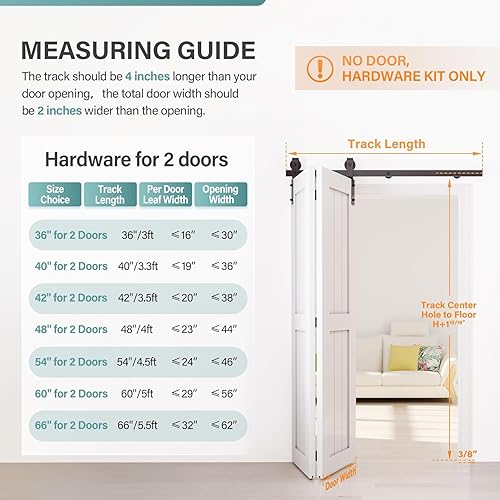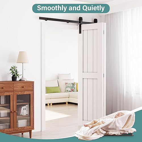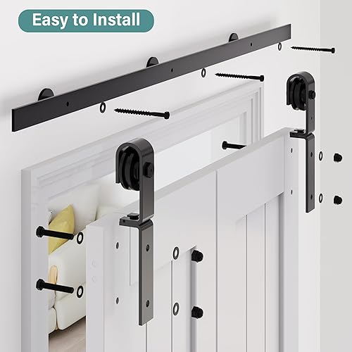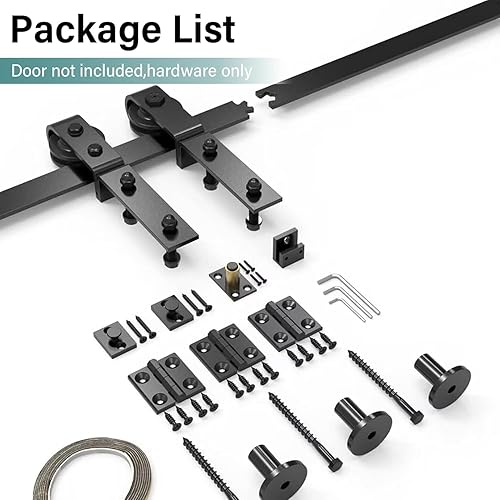 WINSOON Kit per porta scorrevole a due ante scorrevoli da 183 cm, Nero, per armadio, con rullo, per interni, quattro porte in legno da 43 cm