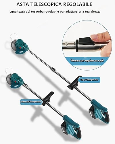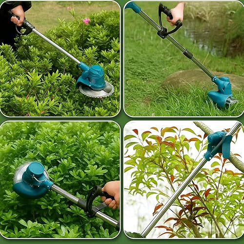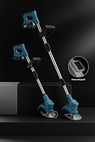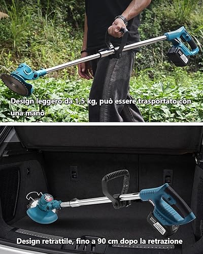 Decespugliatore Elettrico con 2 Batterie a Litio 68VF (21V) Lama da 6 Pollici, Tagliaerba, Tagliabordi con Maniglia Telescopica per il taglio di Giardino, Prati e Terreni