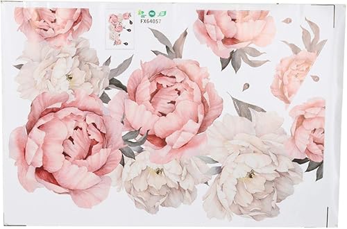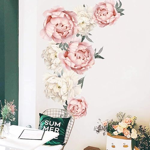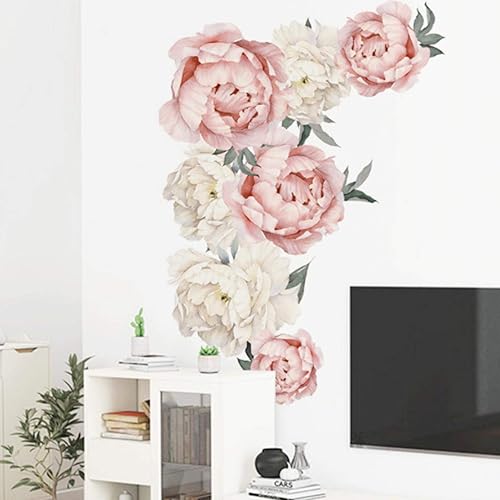 LANTRO JS - Adesivi Murali Decorativi da Parete, Motivo: Fiori di Peonia, Decorazione da Parete per Soggiorno, Camera da Letto, Facile da Attaccare e Staccare