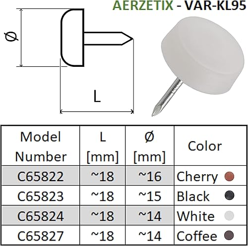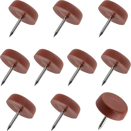 Aerzetix - C65827 - Set di 10 pattini scorrevoli per gambe sedia con chiodo rotondi Ø14mm in plastica - colore caffè - mobile tavolo armadio cassettiera letto accessorio protezione pavimento divano
