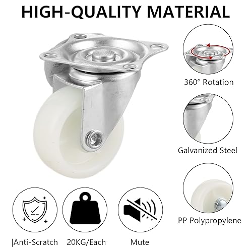 APACALI 20 ruote girevoli per mobili in gomma, Ø 40 mobili, ruote girevoli, ruote per il trasporto, altezza 50 mm, ruote girevoli trasparenti, ruote per mobili con cacciavite e viti