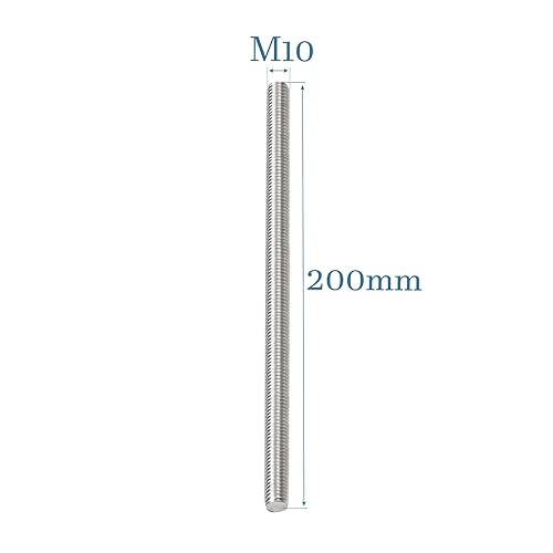 M10 x 200mm Completamente Filettato Prigionieri x 2pz 304 Acciaio inossidabile Asta Barra Borchie Destra Mano Fili per Lavorazione del legno, [Argentato]