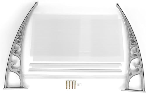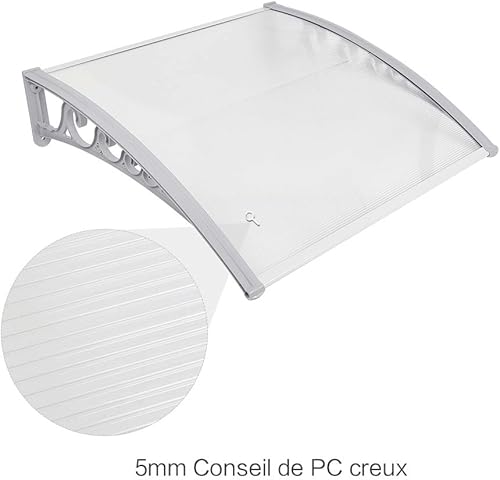 Pensilina Copriporta, Tettoia d'ingresso, Tettoia Modulabile In Policarbonato Alveolare, Porta Finestre Da Esterno, Trasparente (60×100cm)