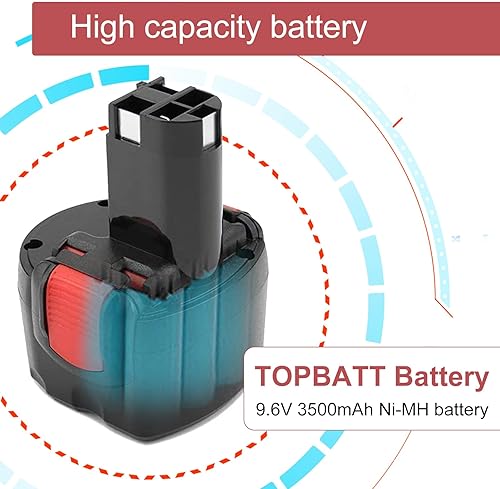 2 Pacchi Topbatt 9,6V 3500mA Ni-MH Batteria di ricambio per Bosch BAT048 BAT100 BAT119 BPT1041 PSR 960 PSR 9,6 VE-2 GSR 9,6 GSR 9,6V PAG 9,6V PLI 9,6V
