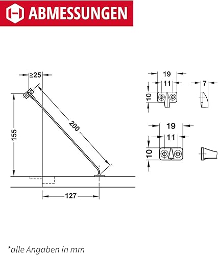 Gedotec H3951 - Supporto a aletta per porte di mobili, 2 pezzi, per armadi, armadi, cucina, in plastica, colore: argento, 200 mm, fune per ante e scomparti da bar