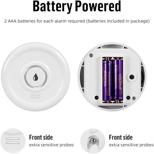 Rilevatore Perdite Acqua 2 Pezzi Sensore Acqua con Batteria 100dB Sensore Perdita Acqua Kit per Sistema di Allarme e Domotica Casa Intelligente, Rilevatore Acqua per Cucina Bagno lavanderie (No WiFi)