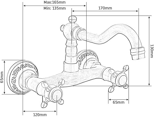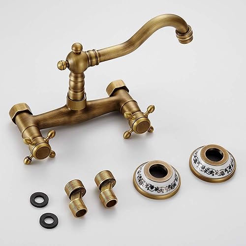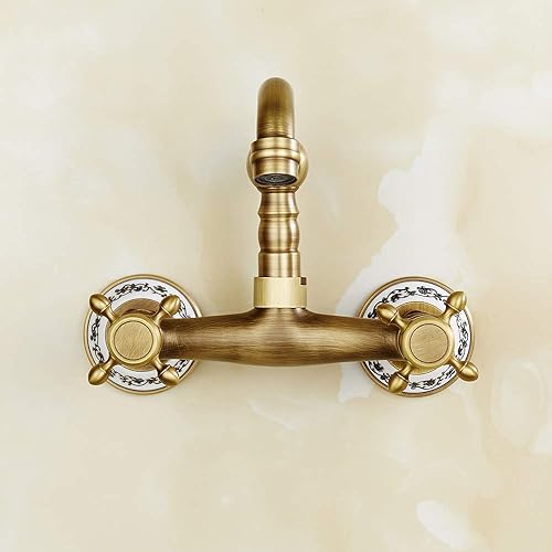 Rubinetto Bronzo a Muro Miscelatore Anticato Classico da Cucina da Bagno a Rotazione 360° con Ceramica Floreale Raffinato