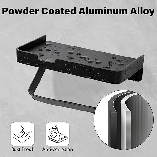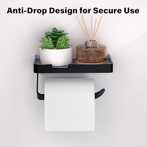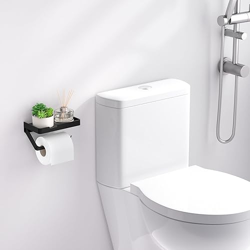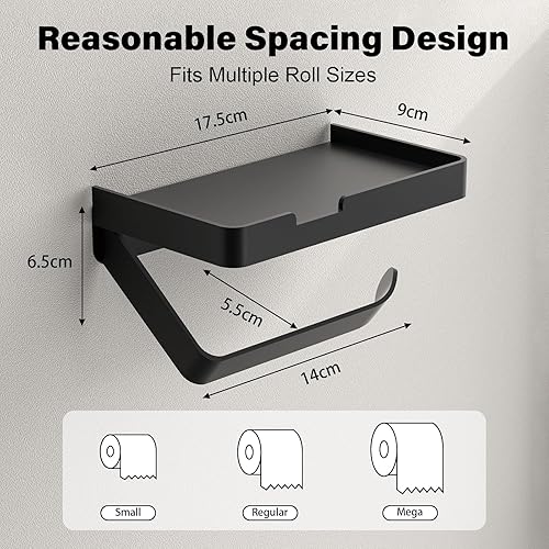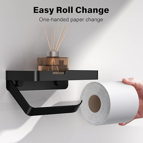 Porta Carta Igienica con Mensola, Portarotolo da Muro con 3 Tipi di Installazione [Viti Adesive Senza Foratura, Adesivo, Fissaggio con Viti], Accessorio per Bagno e Cucina, Nero Opaco