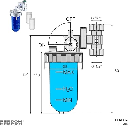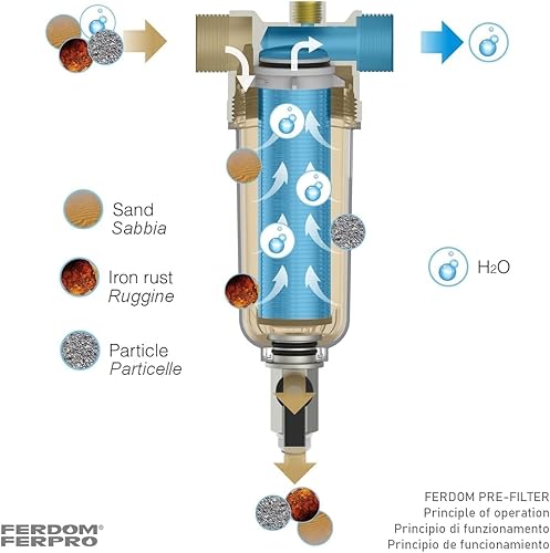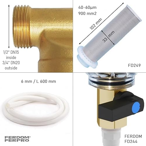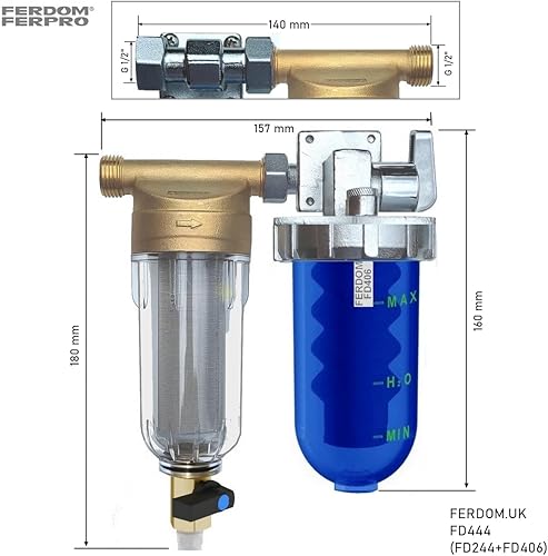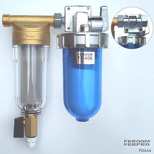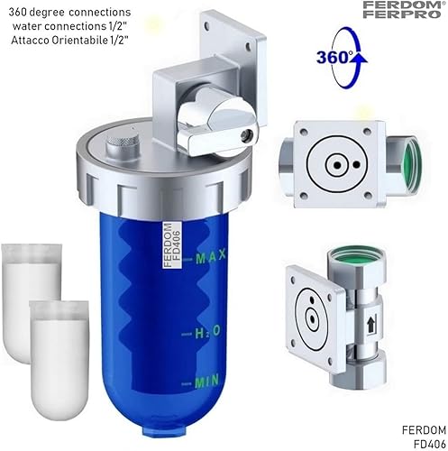 KIT SALVA SCALDABAGNO FD444 FERDOM. 2 In 1. Prefiltro Spin-Down. Maglia in Acciaio Inox 40-60 μm (FD244)+ Dosatore Proporzionali Di Polifosfati-Anticalcare e Anticorrosione, Extra Cartucce(FD406).