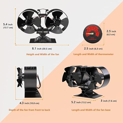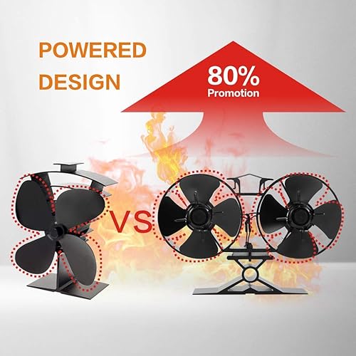 CRSURE - Mini ventilatore per stufa a legna SF-T84, ventola per stufa a legna, 8 pale alimentata a calore, doppio motore, colore nero
