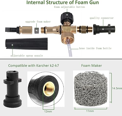 Cannone per lancia in schiuma da neve, compatibile con pistola ad alta pressione Karcher K2 K3 K4 K5 K6 K7, erogatore di sapone da 1 L, con ugello spruzzatore regolabile per pulizia auto