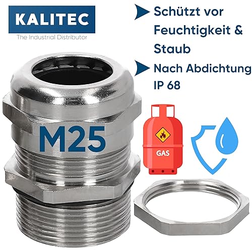M25 - Set di 5 pressacavo in ottone 8,0 – 16,0 mm, controdado M25, in ottone, con passacavo a gas e impermeabile, M25 lungo