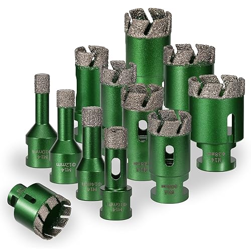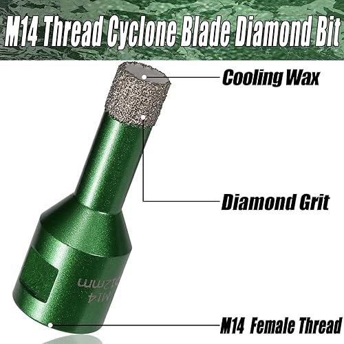 Punta diamantata per trapano da 38 mm, attacco filettatura M14, sega a tazza per muratura, brasata sottovuoto, per piastrelle, marmo, granito, porcellana, cemento, pietra di quarzo