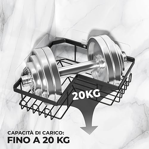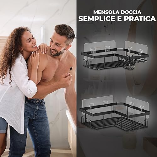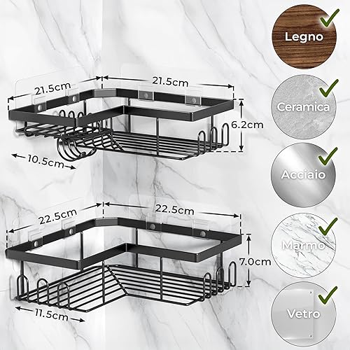 W&S Mensola Doccia Angolare Senza Foratura Set di 2 - Porta Sapone in Acciaio Inox | 2 Mensole Bagno | Porta Sapone per Doccia, Accessori Cucina, Porta Shampoo da Appendere, Porta Bagnoschiuma – Nero