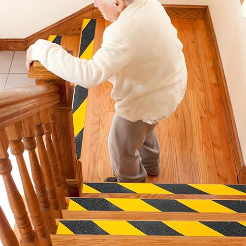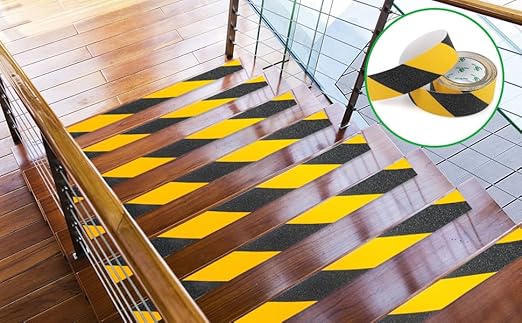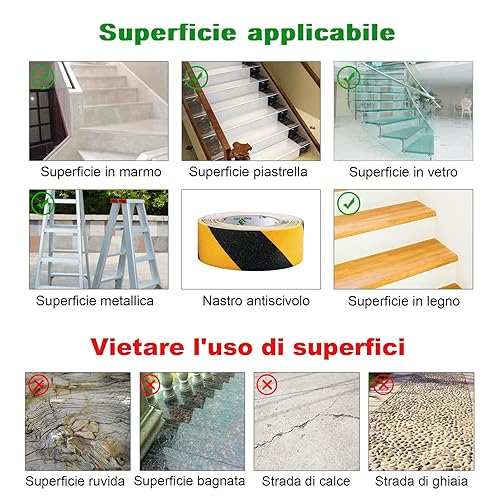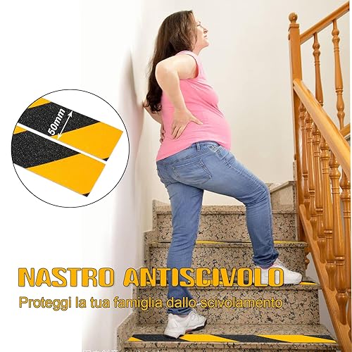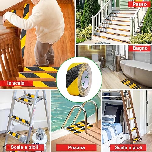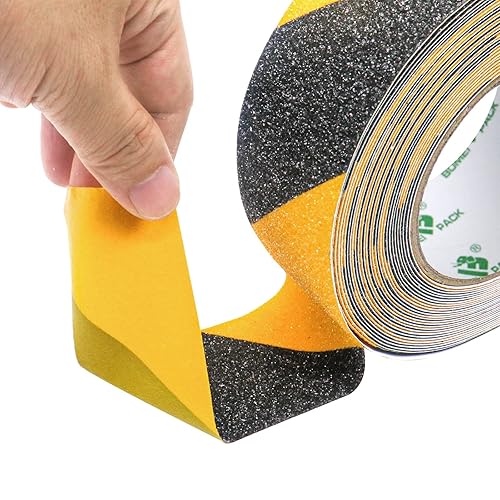 BOMEI PACK Nastro antiscivolo, ad alta trazione, forte presa, nastro di sicurezza per attrito, battistrada antiscivolo per esterni, non facile lasciare residui adesivi,nero/giallo 5cm x 10m