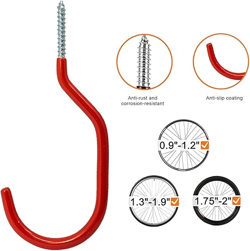 6 Pezzi Ganci Portabici da Muro,Ganci Portabici per Stoccaggio a Soffitto,Supporti Gommati per Bici,Supporti Biciclette da Parete,Riporre Scale,Attrezzature Sportive