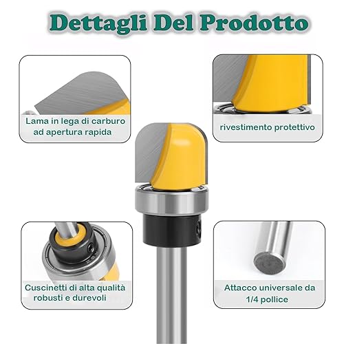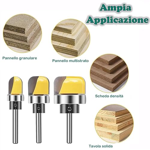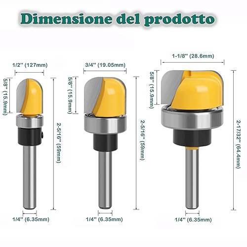 KEWAYO 3 Pezzi Fresa per Router, Fusto da 6.35 mm, Fresa per ciotola e vassoio, fresa a a ciotola, fresa per fresa cava, set di frese per lavorazione del legno