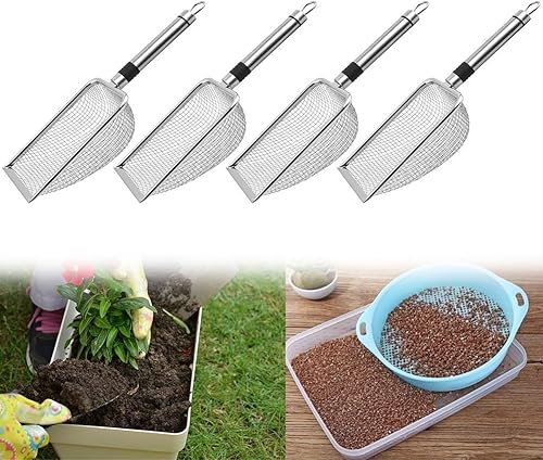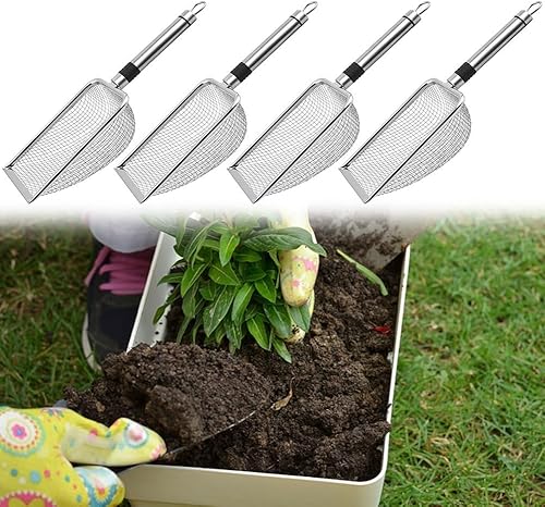 Setaccio da giardino in metallo con manico, rete da 2 mm, 2,8 mm, 3,8 mm/5 mm, setaccio per terreno per setacciare la sabbia del compost (2,0 mm)