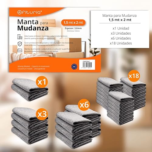 Coperta per trasloco, Misura 1,5 x 2 mt, Proteggi i tuoi mobili da urti e trasferimenti, Coperta riutilizzabile, Coperta per pittore, Yoga e animali domestici Spessore 3,6 mm - Ofituria (1 unità)