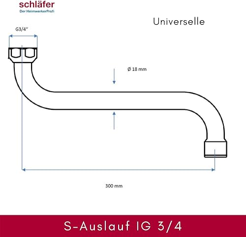 400213 Schläfer | Canna di Ricambio Girevole per Rubinetto Cucina a Parete a S, Lunghezza 25 cm con Ghiera 3/4' (Ø 24,9 mm), Compatibile con Aeratore Neoperl Anticalcare M22 (Incluso)
