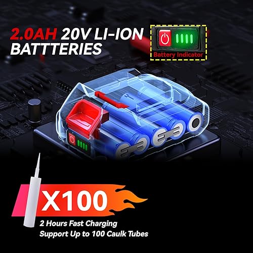 Pressa per cartucce senza fili con batteria da 2000 mAh, pistola elettrica per cartucce, siringa in silicone, LED, regolazione a 4 velocità, adatta per cartucce da 300 ML, spinta massima 300 KG