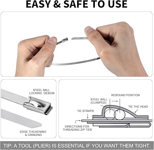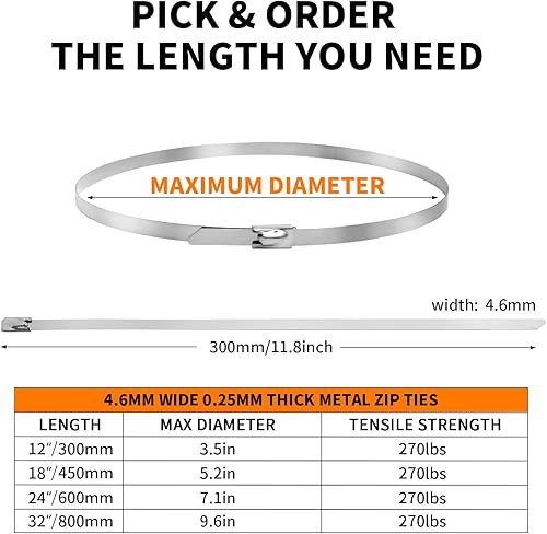 100 Pezzi Fascette in Inox Inossidabile 600mm×4,6mm Fascette Metalliche Autobloccanti Tensione 122 kg Fascette Metallo Elettricista 304 Fermacavi per Fasci Cavi Manutenzione del Giardino