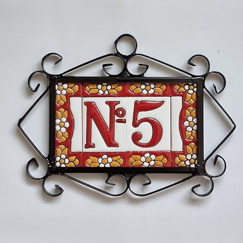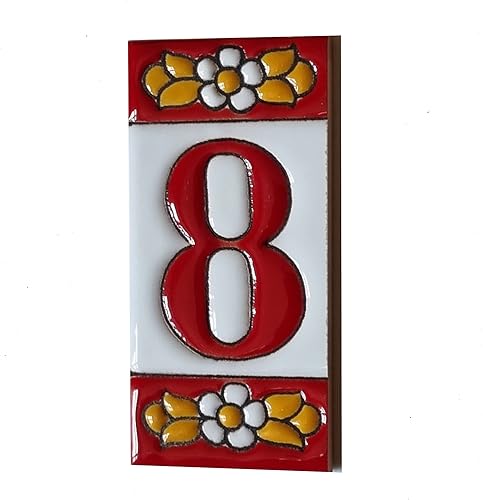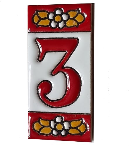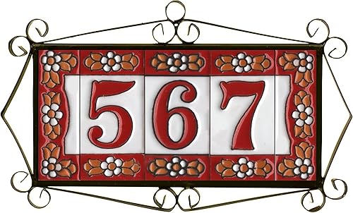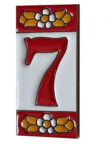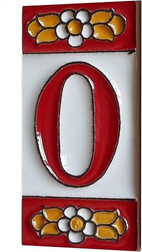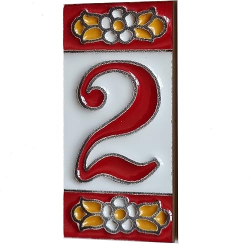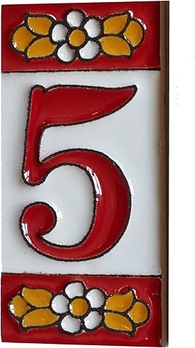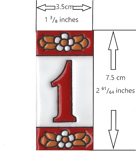 Numeri e lettere di piastrelle in ceramica, motivo floreale rosso, dimensioni piastrelle: 7,5 cm x 3,5 cm, 2 a 10 cornici per piastrelle (5)