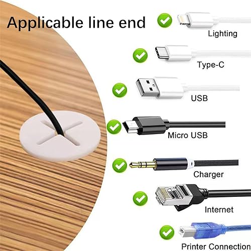 Passacavo Silicone Flessibile,Passacavi Rotondo Bianchi Passacavi,Scrivania Passacavo,per Scrivania Copriforo per Cavi per Ufficio Casa Posto di Lavoro,6 Pezzi