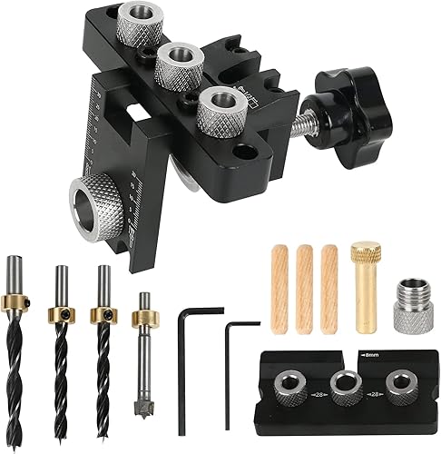 Kit di guida per trapano 6/8/10/15mm,CEIEVER Guida di Perforazione 4 in 1 Guida Localizzatore Jig con Clip di Posizionamento Alluminio 6061 Dima Per Fori a Tasca Per la lavorazione del legno e DIY (4)