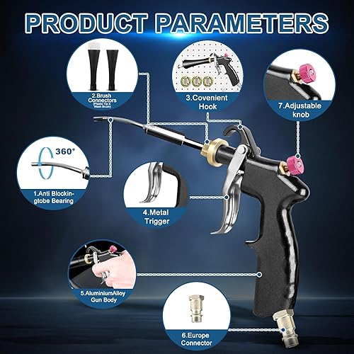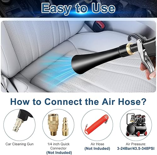 Pistola di Pulizia ad Aria compressa per Auto, soffiatore Pneumatico ad Alta Pressione da 3-24 Bar con 2 ugelli, Pistola ad Aria compressa Regolabile per Interni Auto