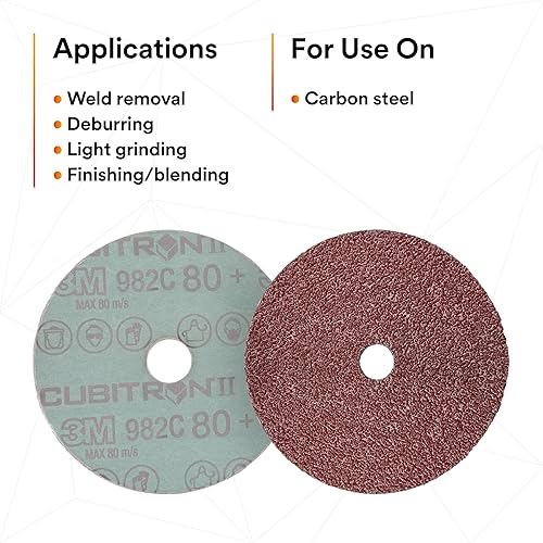 3M Cubitron II Fibre Disc 982C - Disco abrasivo in metallo grana 36+ - Ceramica a forma di precisione - Per smerigliatrici angolari - TN Quick Change - 11,5 cm diam. - Confezione da 25