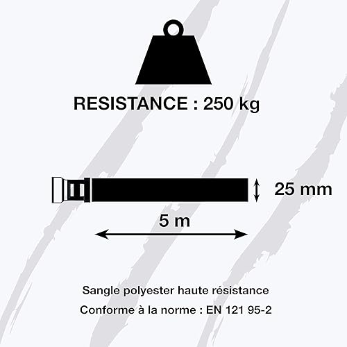 Polaire – Cinghia a cricchetto sovrastampata 5 m x 25 mm – Resistenza 250 kg – Cinghia di serraggio con ganci S per auto, bagagli, colore: rosso