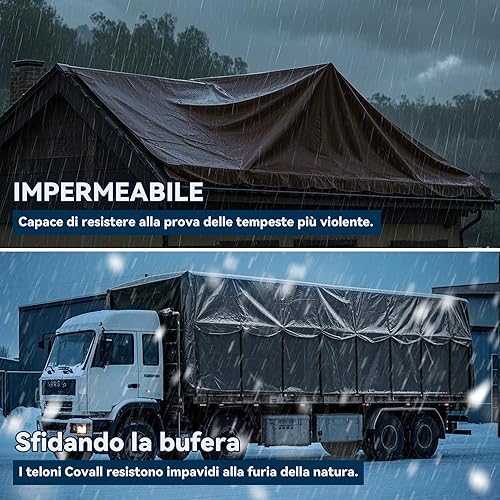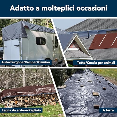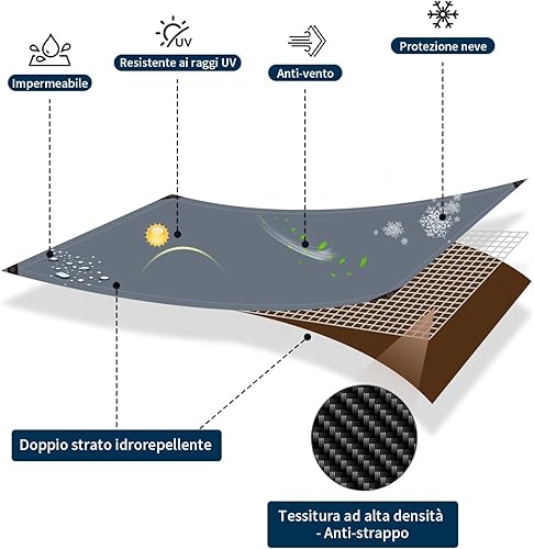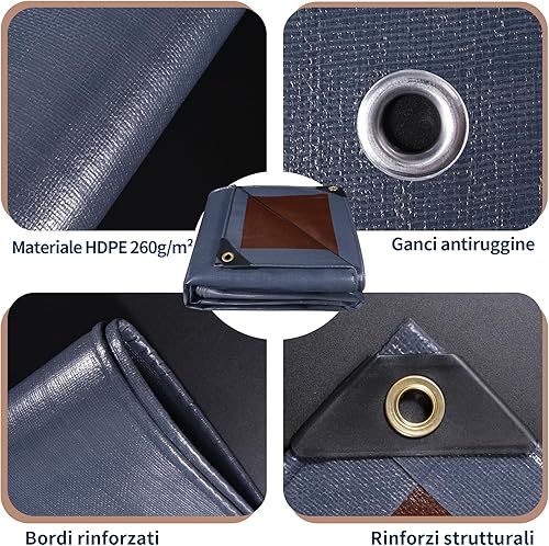 Covall Telo Telone Teloni Occhiellato impermeabile bicolore 260g/m² grigio/marrone super resistente con occhielli rinforzati per tetto, giardino, copertura, piscina, tenda da campeggio.(4x4m)