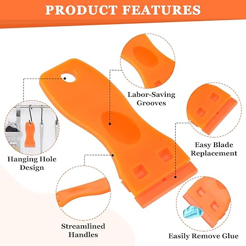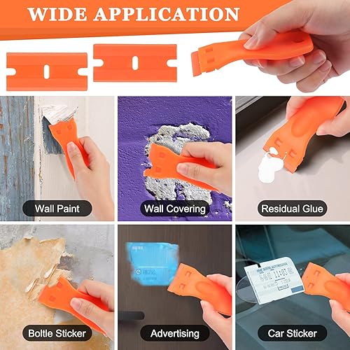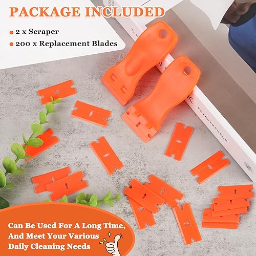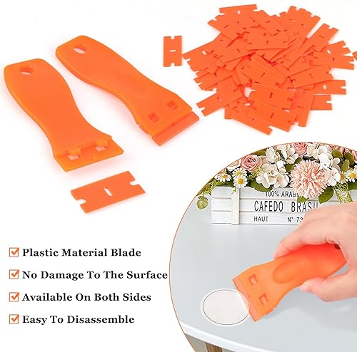2 raschietti in plastica, spatola in plastica con 200 lame in plastica, spatola in plastica, raschietto in plastica per rimuovere residui di colla, solvente per etichette, rimozione di colla, adesivo
