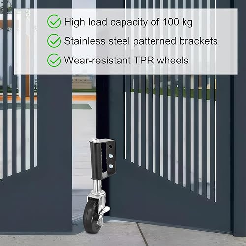 Ruote per Cancello a Molla, Rotelle del Cancello in Gomma con Freno, Girevoli Rotella Caricata a Molla, Ruote per Cancello in Legno Recinzione, 10,2cm, Capacità di Carico di 100 KG (Argento)