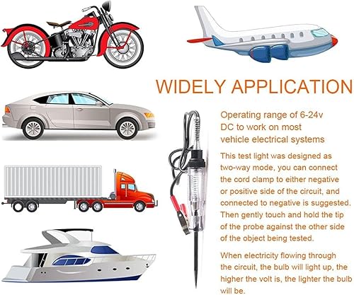 Tester Lampadina per Auto,Cercafase Professionale Auto 6V 12V 24V Automotive Voltage Tester Pen Tester per Circuiti Automotive Sistema Elettrico Tester con Lampada Spia 12V