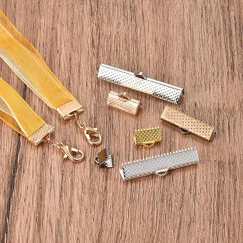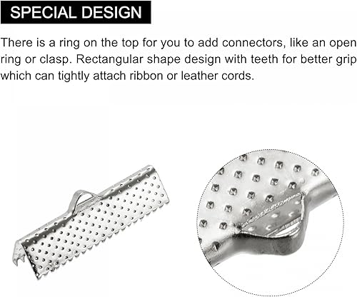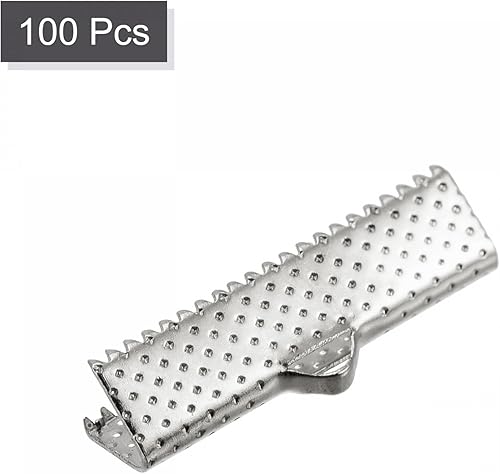 sourcing map 100 morsetti a crimpare a nastro, 10 mm per segnalibro, chiusura a cordoncino, per fai da te, colore argento