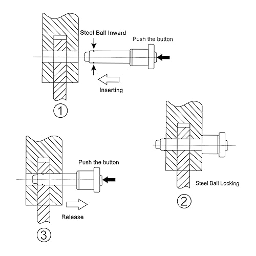 Perni di Bloccaggio a Sfera con Maniglia Pulsante, Diametro Perno 10mm, Lunghezza Utilizzo 35mm Perno a Rilascio Rapido con Cavo Sicurezza, Acciaio Inossidabile 308