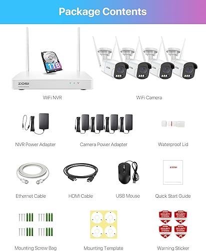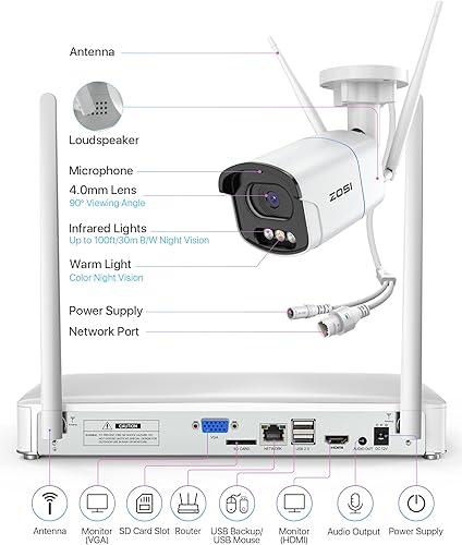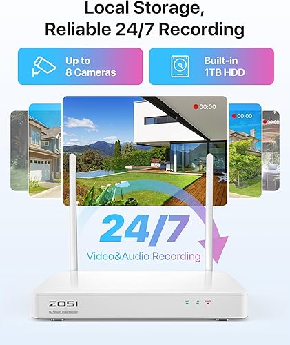 ZOSI 4MP Kit Videosorveglianza WiFi Esterno, 4X Telecamera Bullet, H.265+ 8CH 1TB NVR, Visione Notturna a Colori, Rilevazione di Persone, Audio Bidirezionale, Allarme Intelligente